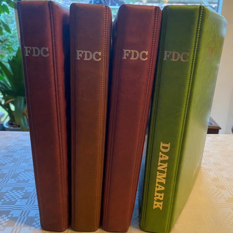 2 album til frimærker (konvolutter, fdc, postkort) i fine stand. Sælges samlet.