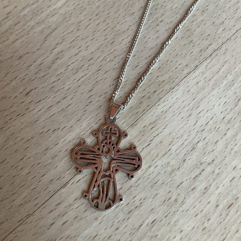 Kors mærket 925 og HS. Kæde mærket 925. Kædens længde 48 cm. Mønster Venezia.