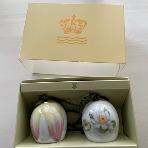 Royal Copenhagen (eller Bing & Grøndahl) påskeæg porcelænsophæng med vintergæk motiv søges med sølvtop ( ikke guldtop) ( også et med hvidt stedmoderblomsr søges) til Espergærde