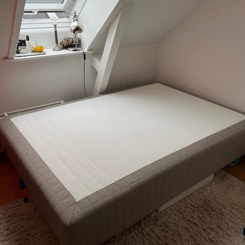 IKEA SKÅRER Seng. Fin stand udover pletterne - de dækkes dog til af af topmadrassen🤩