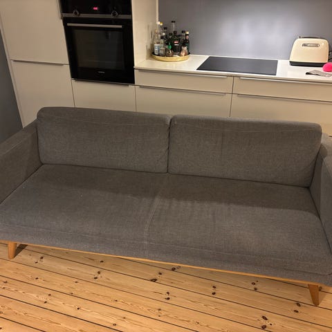 Sofa fra sofacompany. Sofaen fejler ikke noget, men det ene armlæn er gået i stykker. Selve stoffet er intakt, men støtten i den forreste del af armlænet er gået i stykker. Vi har brugt en armlænstøtte fra IKEA for at løse problemet.