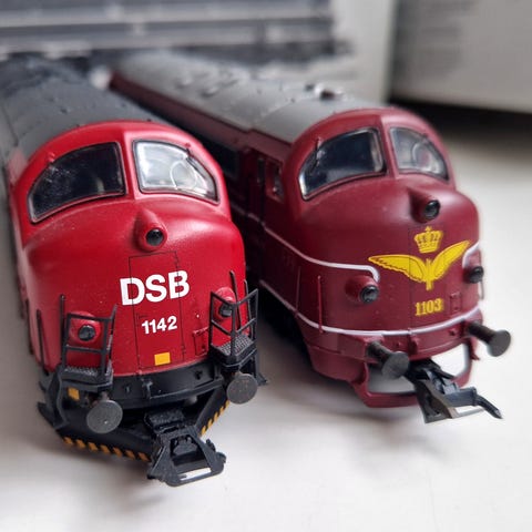 2 X Märklin DSB MY 1106 / 1147. Art.nr. #3067. AC analog-kørsel, vekselstrøm. Kører og skifter fint, blot testet for funktion. Lys ok. Fremstår i ok brugsstand, lidt mærker hist og pist, se billeder. H0, 1;87. Klassiske og robuste modeller fra 1960 / 70ernes Vesttyskland