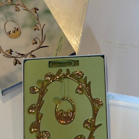 Rosendahl Karen Blixen påskeophæng. Ophænget har et ovalt design med blomstermotiv og leveres i original æske.