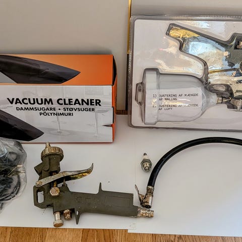 Air Mounty luftværktøj sæt bestående af en luftdrevet boremaskine og en luftdrevet skraldenøgle. Begge dele leveres i original emballage med brugermanual. Velegnet til arbejde med trykluft i værksted eller garage, hvor der er behov for effektiv montering og demontering af skruer og bolte. Materiale i metal med plastdetaljer på håndtag og hoved. Trykluftslange og kompressor medfølger ikke.