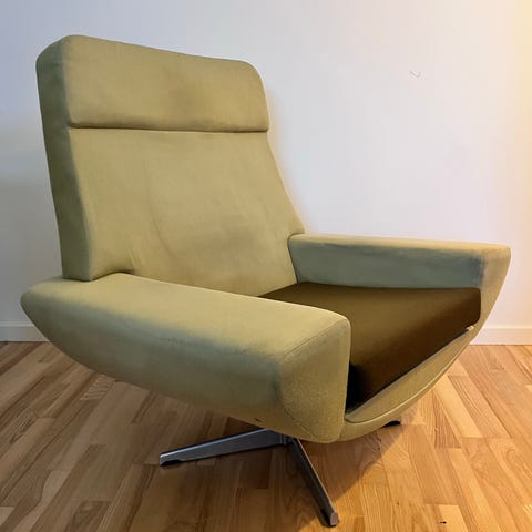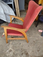 Johannes Andersen, Lænestol, 1 stk brugt lænestol som er tilskrevet Johannes Andersen fra 1950'erne, stol er i eg og teaktræ, der er fortaget reperation på stol ( se billede 4 ), men for at få den rigtig pæn, så må der påregnes lidt arbejde, derfor er prisen også kun 2.300kr.