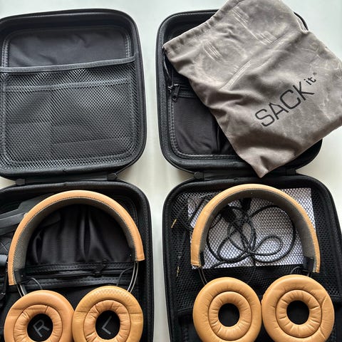 Ubrugt SACKit opbevaringsetui i sort med RFID blokeringsteknologi. Sættet omfatter et hårdt etui med lynlås og bærestrop samt indvendige lommer og elastiske stropper til organisering af tilbehør som kabler osv. Velegnet til opbevaring og transport af hovedtelefonerne og tilhørende udstyr.