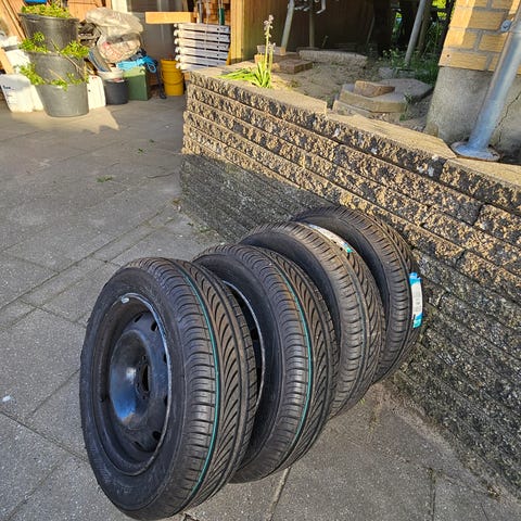 4 stk sommerhjul med dæksensor. Har været brugt 2 sæsoner, meget mønster tilbage. Har siddet på en Opel Karl årgang 2017.