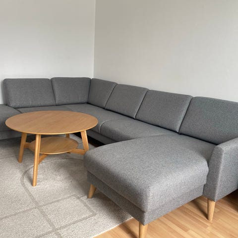 Sofaen kan deles i tre dele så den er lettere at få transporteret