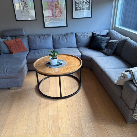 Grå sofa med plads til hele familien. Behagelig at sidde samt ligge i.