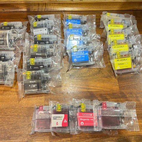 3 nye Originale Brother blækpatroner sælges. LC225XL, LC225XL M ogLC225XL Y samt et rabatkort til en gratis påfyldning. De har aldrig været pakket ud, plomberede poser, og det er XL patroner. 200,- for dem alle. Odense NV