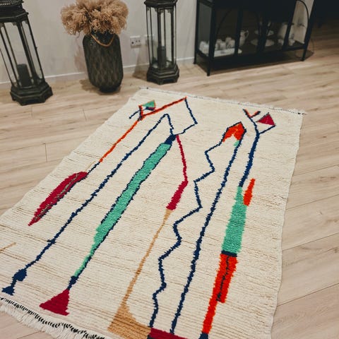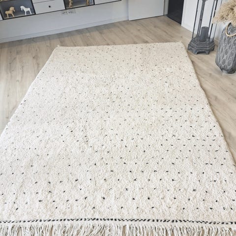 SENDER GERNE . HELT NYT Ægte Marokkansk Beni Ouarain tæppe i 100% uld 🐑. Dejlig blødt og tykt kvalitet. Importeret fra Marokko og har aldrig været brugt. Har også andre Beni tæpper til salg. Måler ca 175×250