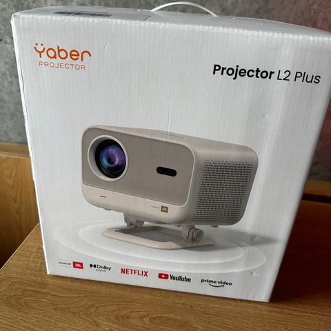 Yaber V5 720p projekor. Fremragende stand fra et røg- og kæledyrsfrit hjem. Fantastisk billig projektor. Kan parres med Bluetooth-højttalere. Se min anden annonce for et passende projektorstativ.