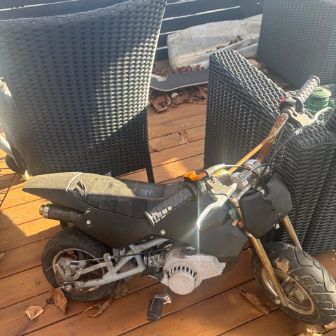 Mini pocketbike motorcykel i sort. Kompakt model.