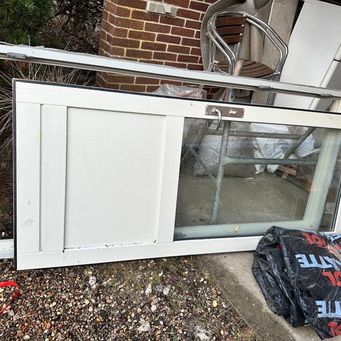 Sidste billede er fra en dør med greb, så der skal du se bort fra hul til lås og greb, som ikke er i den jeg sælger. Der er kun skyderigler og slutblik - alt sammen i dørkanten samt hængsler på bagkanten.