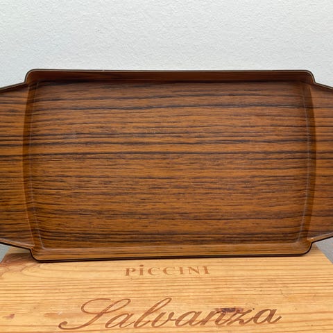 Bakke, Retro bakke/serveringsbakke i hård plastik i sort og hvidt mønster.