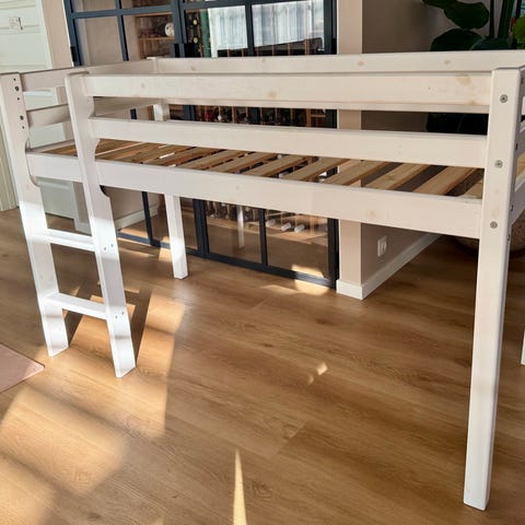 IKEA juniorseng i træ med sengehest. Der medfølger en aftagelig sengehest i træ på den ene side, som giver ekstra sikkerhed til barnet under søvn. Velegnet som juniorseng eller børneseng i børneværelset. Madrassen skal købes separat.