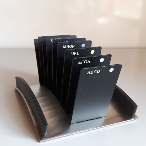Qlocktwo vægur i dansk version i sort udførelse. Uret viser tiden med ord på dansk via oplyste bogstaver i frontpladen. Egnet til vægmontering i hjem eller kontor, hvor tiden ønskes vist på en alternativ og tekstbaseret måde.