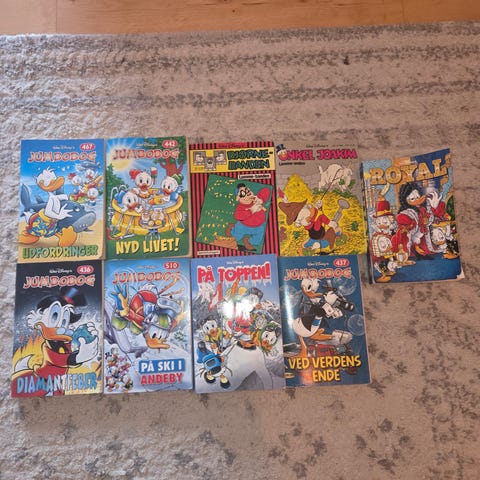 Disney Anders And samling af tegneseriebøger. Bøgerne er små paperback-tegneserier med forskellige historier fra Andeby-universet, blandt andet med Anders And, Rip, Rap og Rup samt andre kendte figurer. Egnet til læsning for børn og samlere af Anders And-tegneserier. Antal og specifikke titler fremgår af billederne.