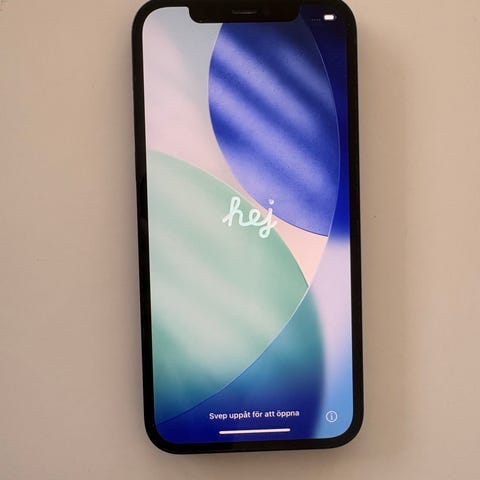 Apple iPhone 12 smartphone med 64 GB intern hukommelse. Modellen har en lys forside med fuldskærmsdisplay og en hvid bagside med dobbelt kamera og LED-blitz. Velegnet til almindelig brug som telefoni, beskeder, internet, sociale medier og apps, samt foto og videooptagelse med de indbyggede kameraer. Understøtter trådløs opladning og brug af forskellige tilbehør via Lightning-stik og Bluetooth.