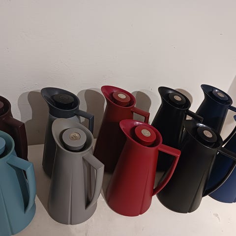 Rosendahl Grand Cru termokande på 1,0 liter i skifergrå farve. Termokanden har et enkelt, kegleformet design med håndtag og låg med trykknapfunktion. Velegnet til servering og opbevaring af varme eller kolde drikke i hjemmet, på kontoret eller til servering ved bordet.