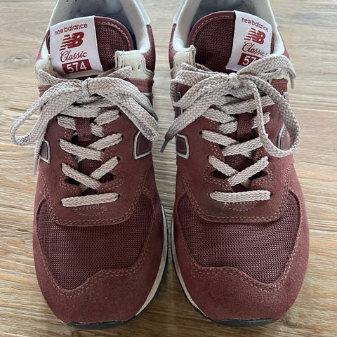 New Balance 574 sneakers i str. 40 (39,5 EU ifølge mærkat). Farve navy/blå med hvide og røde detaljer.