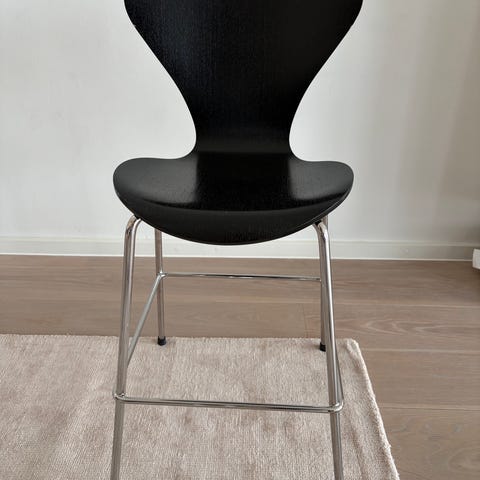 Junior 7’er stol sælges. Et lille hak i sædet og en overfladisk rids på ryggen. Ellers velholdt.