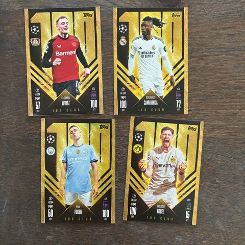 Topps Match Attax fodboldkort sæt. Sættet består af flere kort med forskellige spillere fra forskellige klubber. Kortene viser spillerbilleder, klublogo, position og forskellige spilstatistikker. Velegnet til samling eller bytning for samlere af fodboldkort.