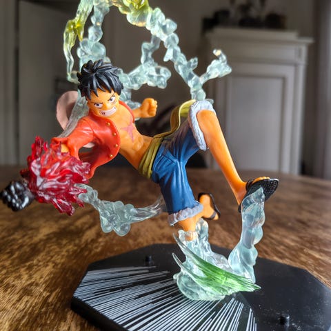 Sælger denne flotte Luffy-figur fra One Piece i anime-stil. Figuren forestiller Luffy i en dynamisk kampstilling med effekter omkring sig og står på en sort base. Ser virkelig fed ud på en hylde!