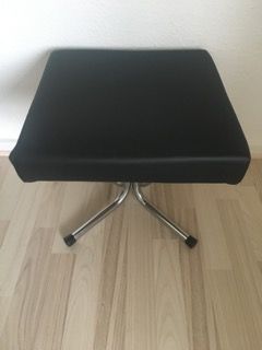 2 Fodskammel med sort pels og træben. Perfekt som ekstra siddeplads eller dekoration. Fra røgfrit hjem. Fejler intet.
