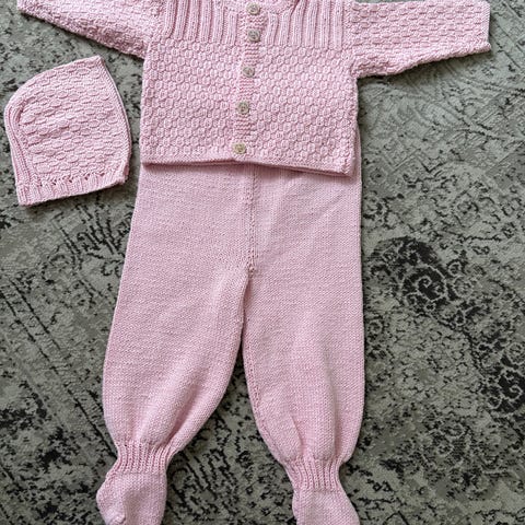 NYT ~ Fint strikket sart gul sæt med smækbukser, trøje mm