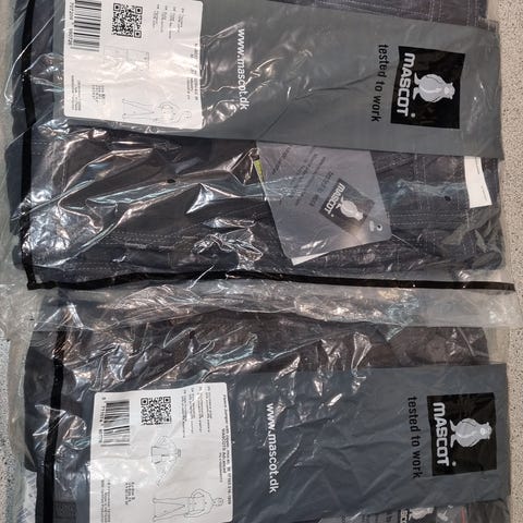 -Mascot bukser str 56. mørkeblå med mellemblå linning. Livvidde 103cm, benlængde 82cm. Sælges samlet for 500kr