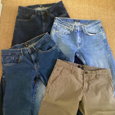 Se beskrivelser af de enkelt par bukser i mine andre annoncer, hvor de også kan købes enkeltvis.