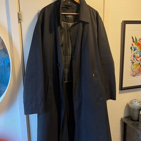 OBS: Der er hul/skade i foret ved nederste kant/inderkanten (se billeder). Derudover en lille “nup”/slid i stoffet (se nærbillede). Sælges derfor billigt.