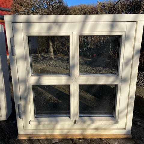 Vindue med 3 fag i hvid ramme. Rektangulær model med sidehængsling, egnet til montering i ydervæg. Kan anvendes til eksempelvis udskiftning af eksisterende vindue eller til nybyg/ombygning, hvor et smalt, højt vindue ønskes.