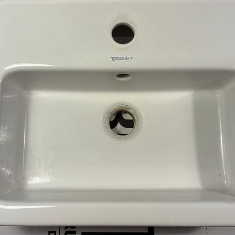 Duravit Vero håndvask i rektangulært design. Mål ca. 550 x 465 mm. Vasken er i hvid sanitetsporcelæn med overløb og hul til armatur. Egnet til montering på bordplade eller som indbygning i badeværelsesmøbel, afhængigt af producentens anvisninger. Passer til standard afløbs- og armaturinstallationer til badeværelse.