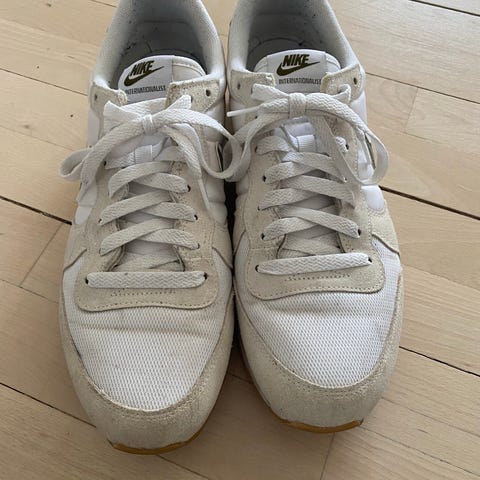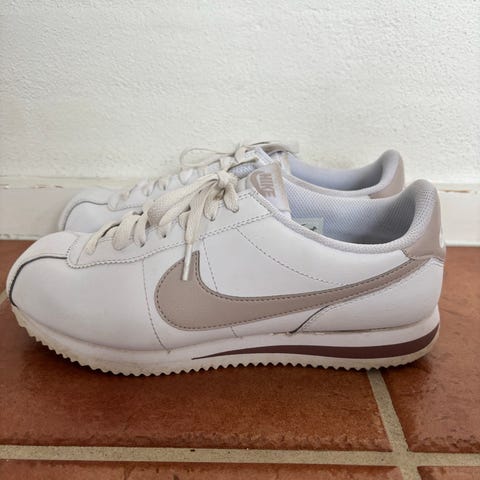 Nike sneakers i størrelse 40,5. De er små i størrelsen. Meget flot stand. Skoene er i sort med hvid Nike-logo og hvid sål. Klassisk lav model med snørelukning og mønstret ydersål. Velegnet som hverdagssko eller fritidssko. Sælges kun fordi de er købt for små.