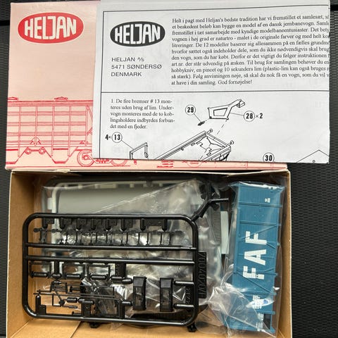 Heljan model togvogn, tankvogn med Kommunekemi a/s bemaling. Vognen er udført som en lukket tankvogn med rækværk og rørføring på toppen samt påtrykte tekniske data på siden. Egnet til modeljernbane og samling.