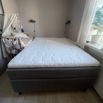 Beige kontinentalseng inklusiv madras, topmadras og gavl (10x110cm).