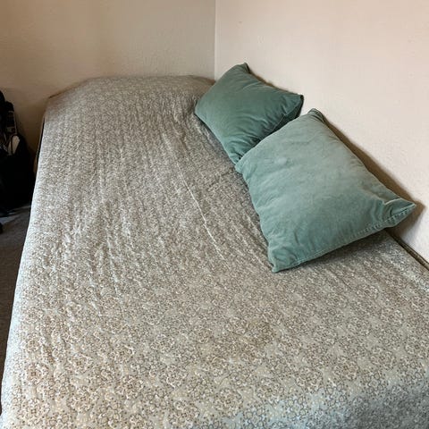 Sengen er i pæn og brugt stand og fungerer som den skal.
