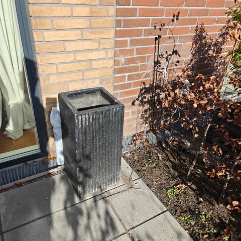 3 Rektangulære plantekasser i mørkegrå flet-look. Hver plantekasse har tre separate indsatskrukker i plastik. Egnet til udendørs brug på terrasse, altan eller ved indgangsparti. Materialet er plast med fletstruktur, som er let at rengøre og kræver minimal vedligeholdelse. Velegnet til blomster, krydderurter eller mindre buske. Sælges for 75kr pr stk. samlet pris 200kr.