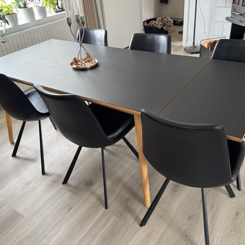 Vi overvejer at sælge vores spisebord, da vi godt kunne tænke os et nyt. Spisebordet fremstår i god stand med enkelte ridser. Der medfølger IKKE tillægsplader. Købt på KEEPR COLLECTIVE den 19. marts 2025 for kr. 11.499 - kvittering haves.