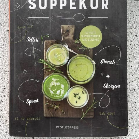 Martin og Jytte Bonde Westmark "Den sejeste suppekur" kogebog. Bogen indeholder opskrifter og vejledning til suppekure med fokus på grøntsager som selleri, persille, skovgrøn og spinat. Indholdet omfatter introduktion til sundere vaner, 14-dages suppekur, opskrifter på supper og bowls samt tips til at fortsætte en sund livsstil. Kogebogen er illustreret med fotos og har overskuelig indholdsfortegnelse med kapitler om forberedelse, ingredienser og praktiske råd til brug af suppekur i hverdagen.