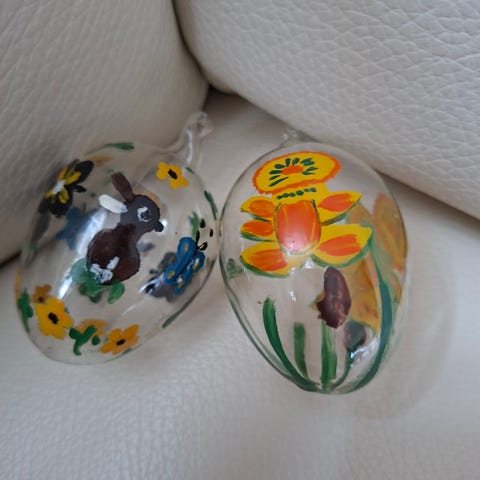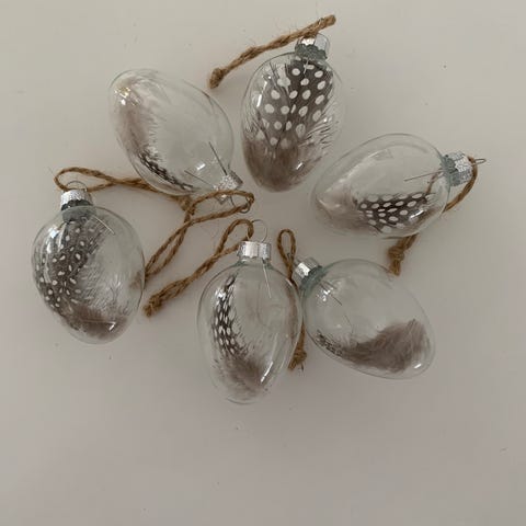Fine påskeæg i glas med fjer indeni og andet materiale 🥰