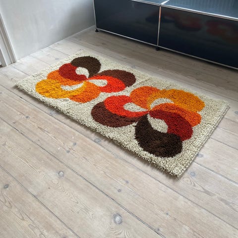 Mid-century / midcentury Skandinavisk håndvævet tæppe.