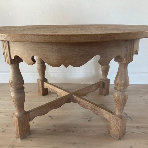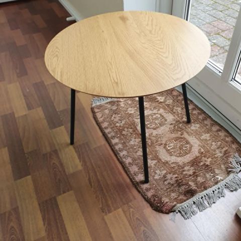 Bord i massiv egetræ. Bordet er helt nyt og aldrig brugt. Bordet har desværre en lille revne i bordpladen, som næsten ikke kan ses. Derfor sælges bordet til den meget lave pris.