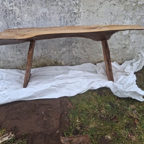 Hjørnebænk, massivt egetræ i norsk design sælges. Cirka mål (H x B x L): 80 x 165 x 175 cm.