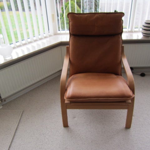 Her kan du få lækre lænestole af ægte læder. De kan lænes bagud.