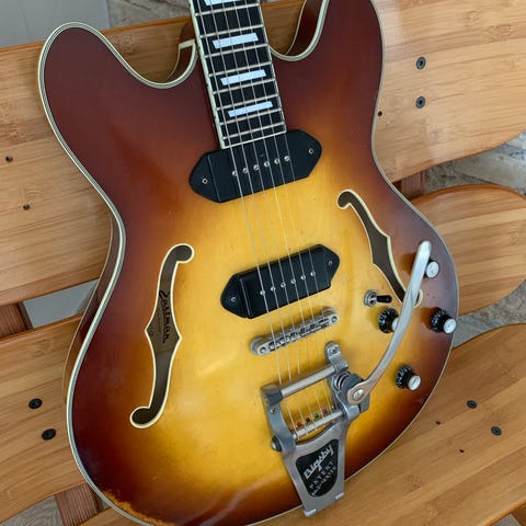 Up for sale is a stunning 1995 Epiphone Riviera from the highly coveted Peerless factory in Korea. This era is famous for its build quality, and this piece is no exception. It has been professionally upgraded to pay homage to the iconic Nick Valensi (The Strokes) model. These guitars are hard to come by, especially in Natural finish. Same goes for the P94s which are discontinued. I've had this project in mind for years. It is finally put together and I'm sure it will make a Strokes fan happy! It is as close as you can get to the real deal.