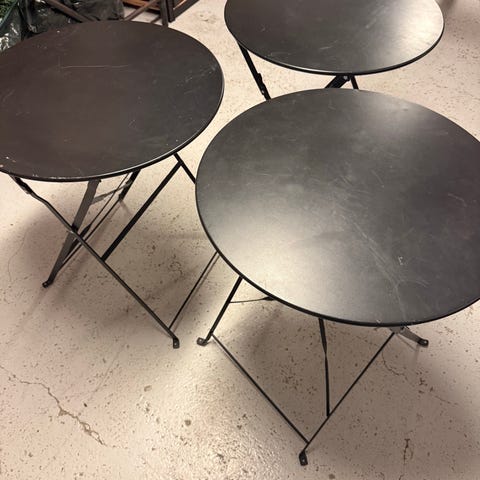 Rundt klapbord i metal i grøn farve. Bordet har sammenklappeligt stel, som gør det nemt at opbevare og flytte. Egnet som lille spise- eller cafébord, altanbord eller sidebord både inde og ude, afhængigt af behov og placering.