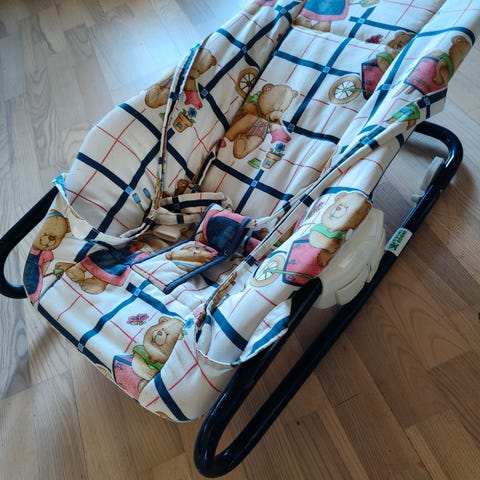 Skråstol med flere positioner. Bæresele.